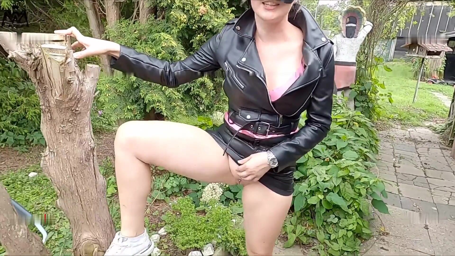 In a hot leather outfit I sneak through the neighbor's garden looking for an opportunity to piss somewhere there. Since the nice neighbor should be back from work soon, I don't have that much time. Not that he might even catch me doing it as I piss his property full of it. He always looks at me greedily when he's sitting in his garden chair and I'm walking out of the house. I think I'll do the chair buttons first. Greetings from your Wet Wonder