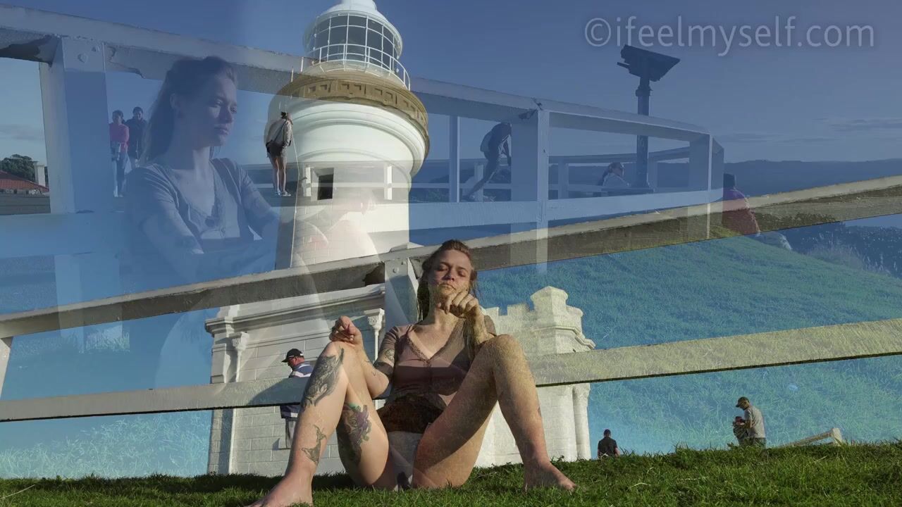 Is this the pinnacle of the IFM pee break? I mean, it's got everything - pristine lighthouse, stunning woman, milling public... but most of all, it's the brilliant, beautiful, sexy audacity of Devi, eyes closed, totally at peace as that subtle wet spot soaks through her panties. If that ain't the gold standard around here, I don't know what is. Ifeelmysef