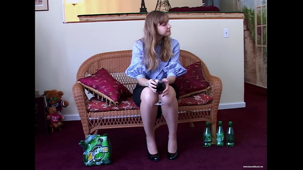 Continuing the series of movies where girls from an agency called The League of Desperate Ladies send out their best holders to clients who will pay handsomely to watch a woman squirming in desperation as she tries to drink liquid and not lose control of her bladder for three hours. Danielle is supremely confident of her ability to hold it when she arrives, and maintains a defiant air even as she becomes enormously desperate to pee. Like Jayne before her, Danielle accuses the client of tampering with the clock to make her wait longer than the prescribed time. With just minutes remaining on the clock, Danielle says she is not going to tolerate cheating and rises to leave. On the door step, she wets her skirt, pantyhose and shoes. In her hurry, she has forgotten her coat, and when the client returns from retrieving it for her, he finds Danielle wetting herself again. When she empties out her shoes before departing, rather a lot of pee spills out.