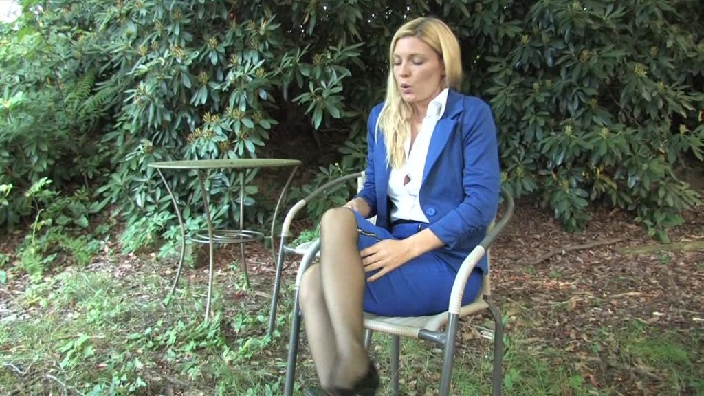 Niki is on the verge of being promoted at work. All it needs now is her boss's seal of approval and her dreams of a managerial position will come true. The boss asks her to stop by his house on her way home from the office for a final chat about the new position. Niki arrives after a long drive, during which she didn't take a bathroom break. When she climbs from her car she already needs to pee. The boss starts chatting with her and she fidgets, suddenly dying to relieve herself. She tries to bring the meeting to a rapid conclusion, but the boss can see the predicament she is in and keeps her talking. Finally, he tells her that if she wants the promotion, she needs to stay a while and not use the bathroom. Niki is a little mystified by his request but she badly wants the promotion, almost as badly as she needs to pee. She continues holding up her end of the conversation, but she is distracted by her very full bladder. Finally, unable to hold it any longer, Niki wets her skirt in front