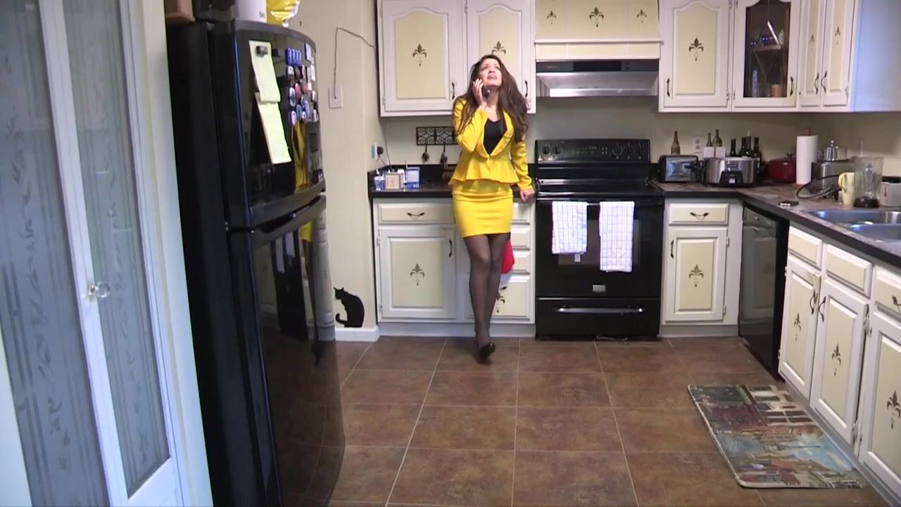 A man arrives at the passenger's window of Jasmine's car as she arrives home from work. He says he has rigged her home with multiple cameras and a very large device in the basement which, if triggered, would raze the property to the ground. He tells the girls that she must do exactly as he says or he will detonate it with her inside the house. Jasmine is squirming, making it clear that she needs to pee. The man tells her to enter the house and carry on as she normally would, but she must not, under any circumstances, visit the bathroom or pee into a container of any kind. Instead, she must hold her pee until she receives a call telling her she can relieve herself. Jasmine panics, pointing out that she is desperate to pee; the man is unmoved by her pleading, and tells her to do as she is told. Jasmine enters the house, squirming in desperation, and sets about performing chores, badly distracted by her very full bladder. She adds a little water to the Christmas tree, not really the best option when she is on the verge of pissing herself, and even considers washing the dirty dishes, but getting her hands wet would be even worse. Instead, Jasmine decides to start cooking to distract her from her dilemma. It's no good; she's bursting. Standing in front of the cooker, she loses control and soaks her legs. Did the man see? What will happen to her now?