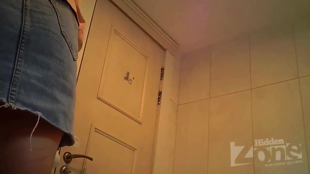Plump girl in purple panties peeing while standing. Round ass and shaved pussy close up. Nice close-up shots of a shaved crotch.