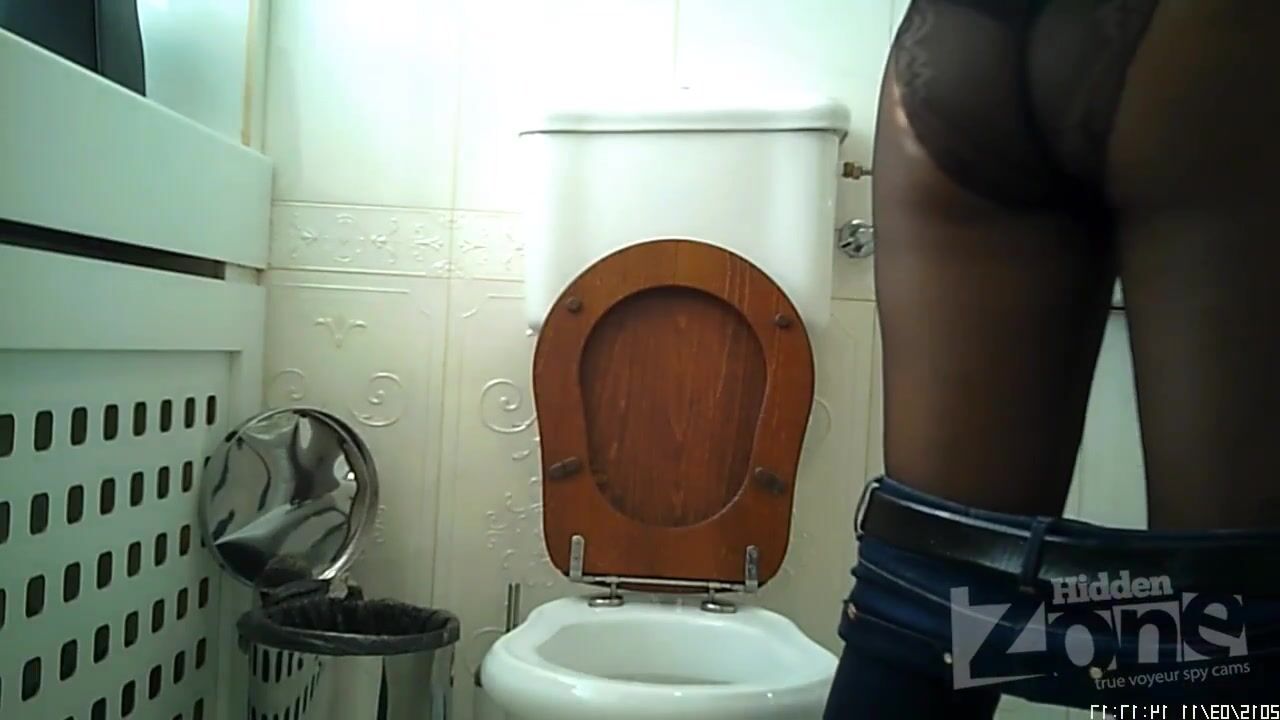 Tanned blonde in black panties pee while standing. View from two cameras. Nice back camera footage. Shaved pussy and round ass close-up. Another good model for shooting with a hidden camera.