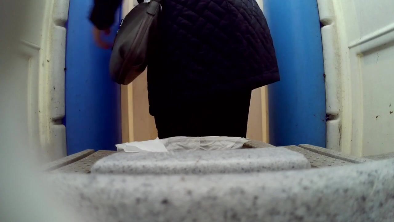 Hidden camera caught different girls peeing in the toilet in the park.