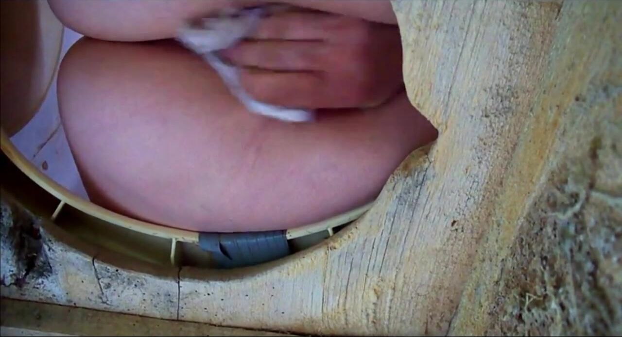 I could not resist- I had to film her while she uses the wooden toiletstall and my cam was under her nice little butt... she had to pee