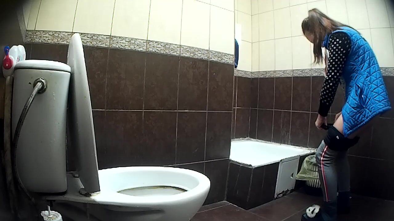 she changes her pad and pees into the bowl by going on the of the bowl. She has a nice slim figure and ass.