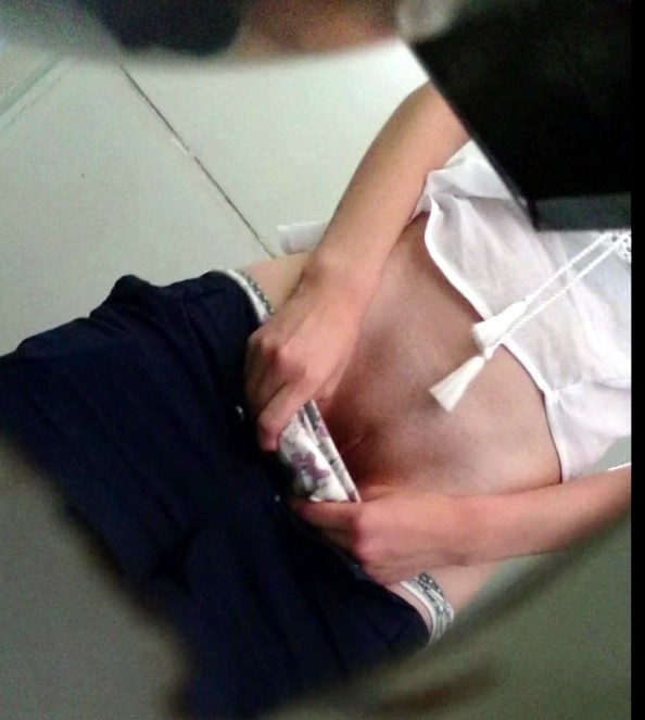 tattoogirl uses public toilet