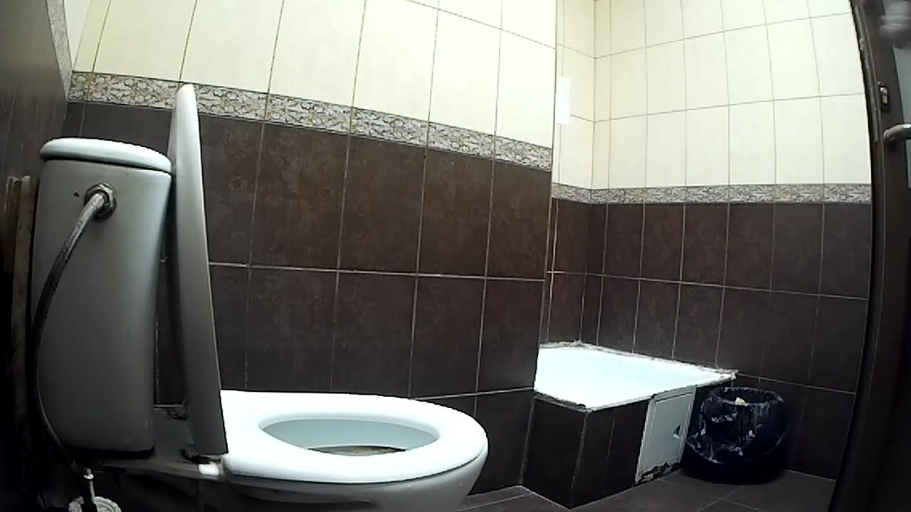What a mess at the toilet... does she know what happens between her legs? All runs to the floor and she does not care. Next slim young girl is sitting in her piss...