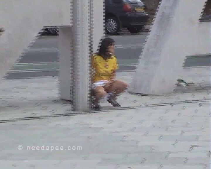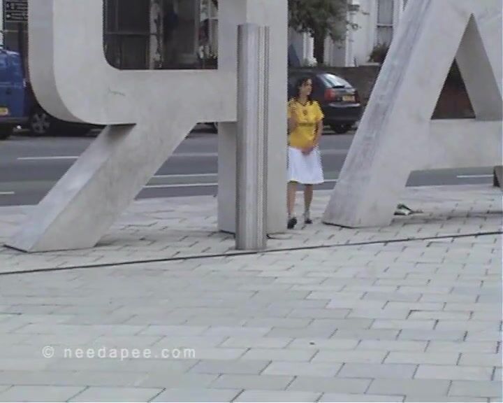 In this naughty public pee I visit the new Arsenal Football stadium in London. The bumpy ride on the London tube had me doubled up in pain by the time I arrived, and guess what - no toilets were to be found. I take a squat and take my chance to pee by the lettering that greets visitors to the stadium. Watch as a passer-by observes and I disguise my naughtiness by pretending to do up my show lace, all the while peeing!