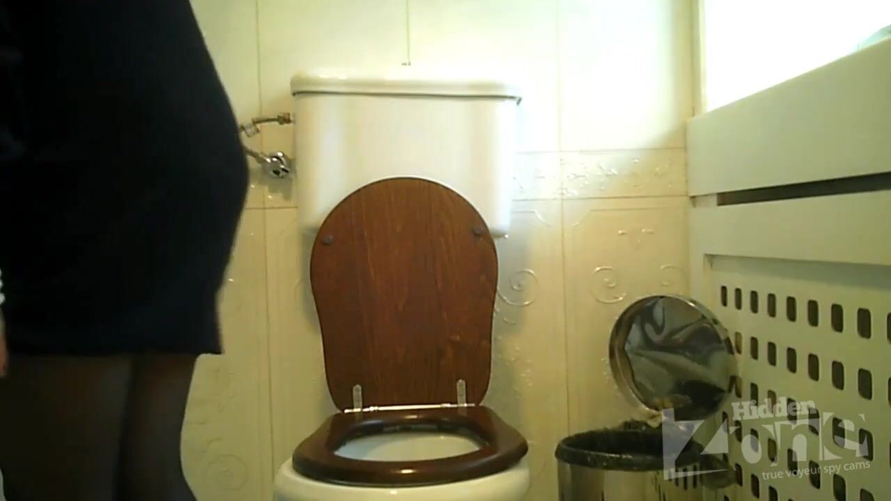 Slim girl in pink panties pee standing up. View from two cameras. Good shots from the back of the camera. Shaved crotch and round ass got into the lens of our hidden camera.