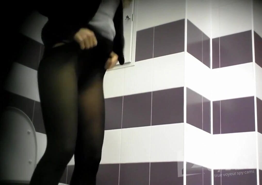Slim blonde in black panties pee standing up. View from one camera. Our hidden camera took a close-up shot of her hairy pussy. Another successful spy camera survey in the toilet.