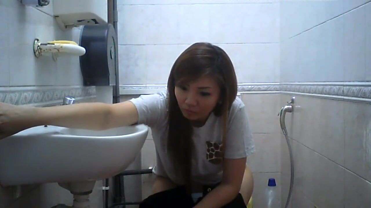 Spycam filmed asian baby with a smooth pussy in the toilet