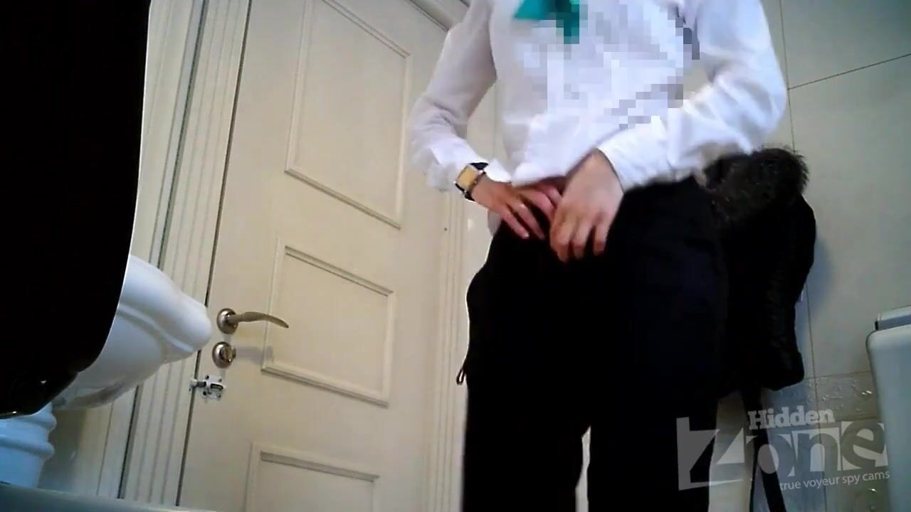 Hidden camera in the toilet at the station. View from two cameras. Blonde in black panties pee standing up. Good shots from the back of the camera. Anus and shaved pussy close up.