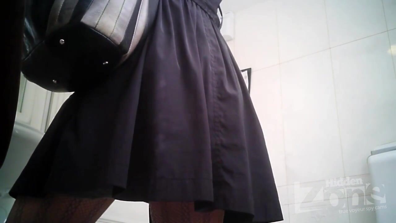 Brunette in gray shorts pee standing up. View from one camera. Shaved vagina and pink anus close up. Another successful spy camera survey in the toilet.