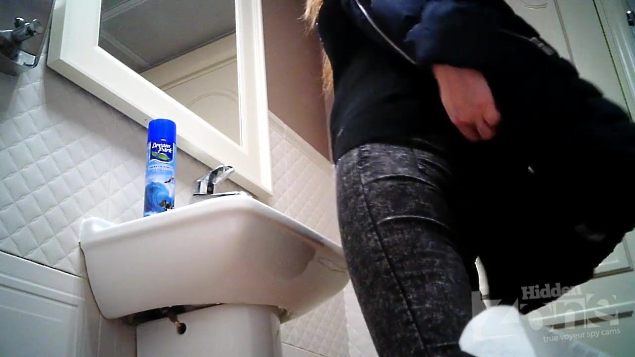 Hidden camera in the female toilet. View from one camera. Girl in white panties pee standing up. Our cameraman filmed her round ass and shaved crotch on a hidden camera.