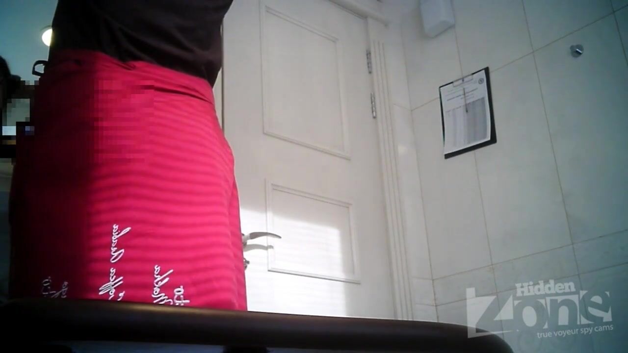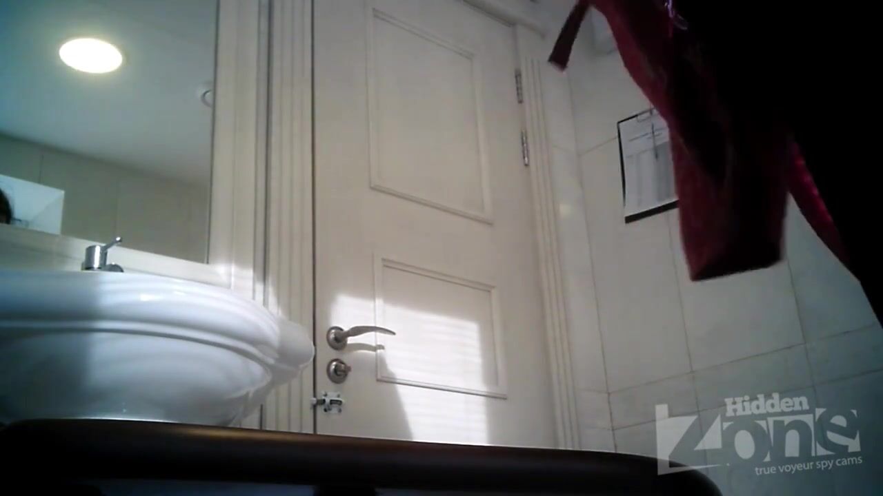 The girl in white shorts pee standing up. View from one camera. Beautiful ass and shaved crotch got into the lens of our hidden camera. A good model for shooting a hidden camera.