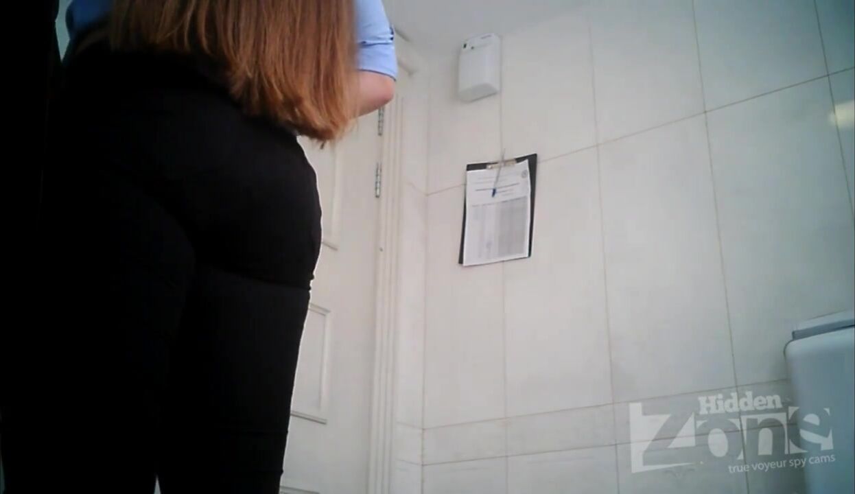 Hidden camera in the female restroom. View from one camera. Girl in black shorts pee standing up. Our cameraman took a close-up shot of her shaved pussy and anus on a hidden camera.