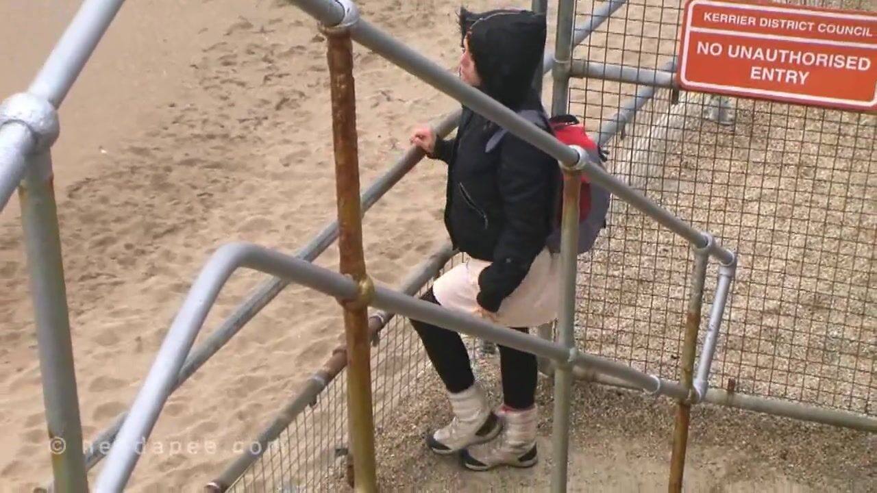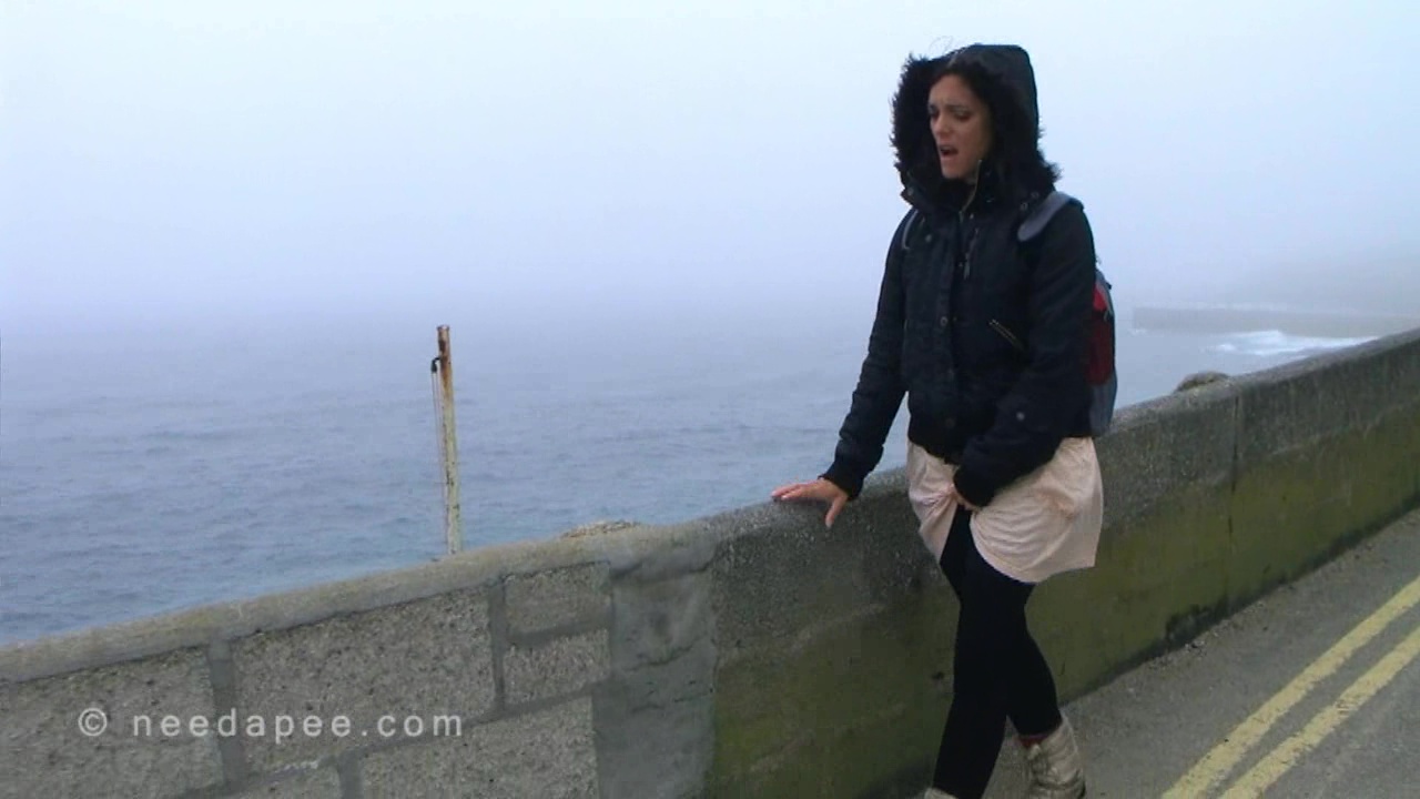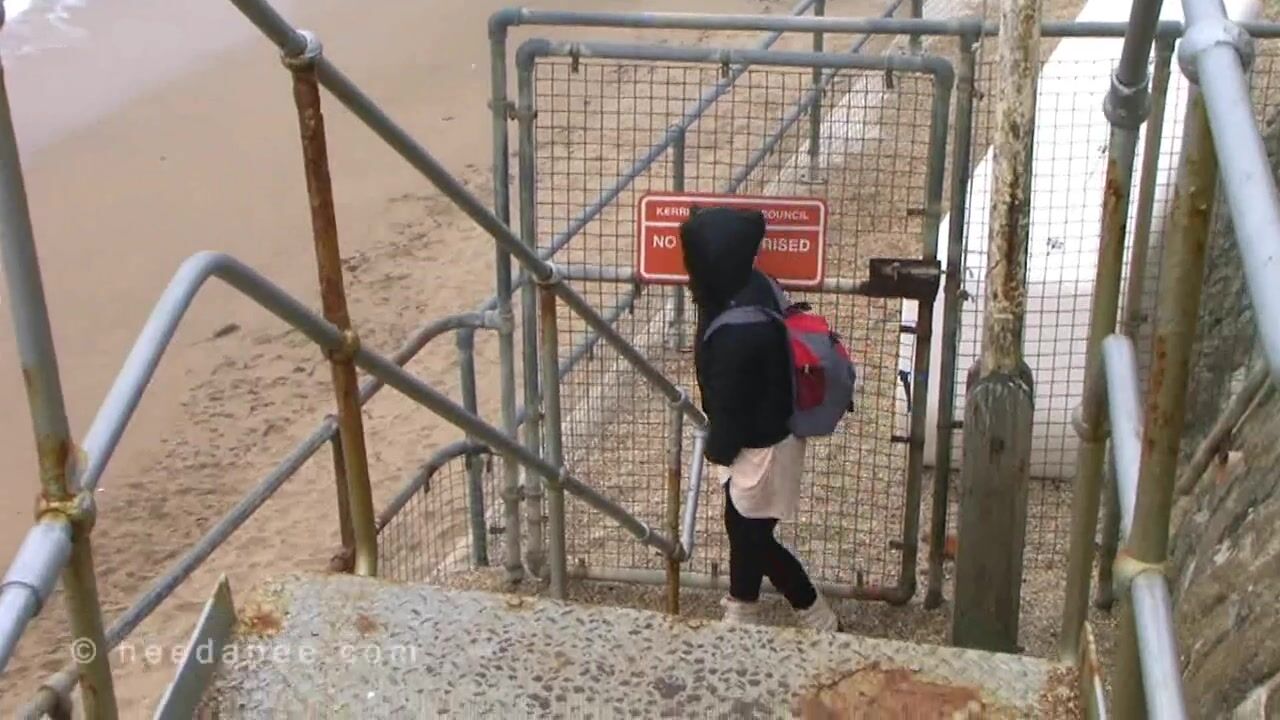 I just knew the fine early summer weather would not last, and so it proved recently on a trip to the coast. The wet and windswept conditions were ideal for naughty street pee as those pesky crowds weren't out and so there was ample opportunity for me to indulge in some naughty peeing! I found a nice spot at the bottom of a set of steps leading to the beach where I pull my leggings down and sneakily took a piss!