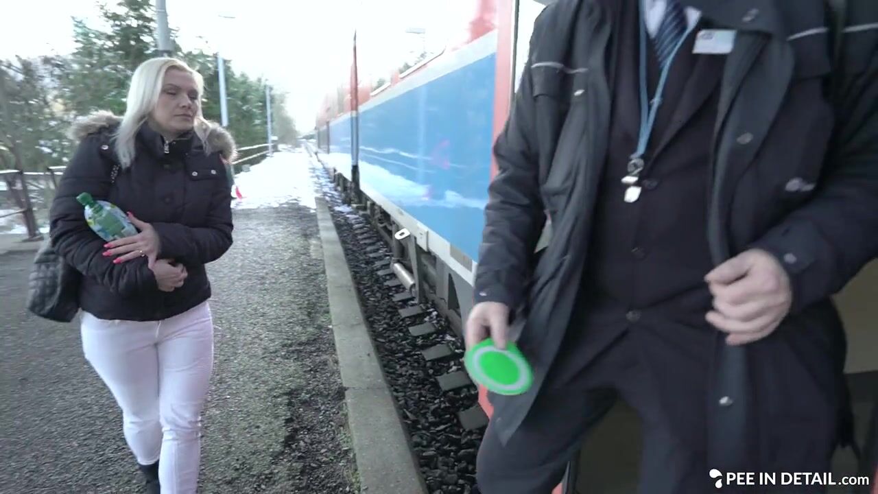 Veronika is waiting for the train in terribly cold weather and she's really looking forward to sitting on that warm seat... and using the toilet on the train. There are no bathrooms at this station so this is the only option left.