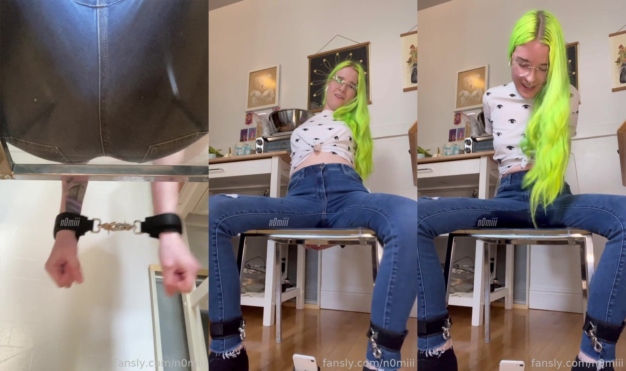 VIP I’m handcuffed behind my back, and my legs are held open with ankle cuffs strapped to this chair while I’m desperate! I’ve got a second camera under the clear chair so you can see my jeans getting soaked I accidentally pissed all over that camera too, oops! #fyp #wetting #pee #piss #jeanswetting #desperation