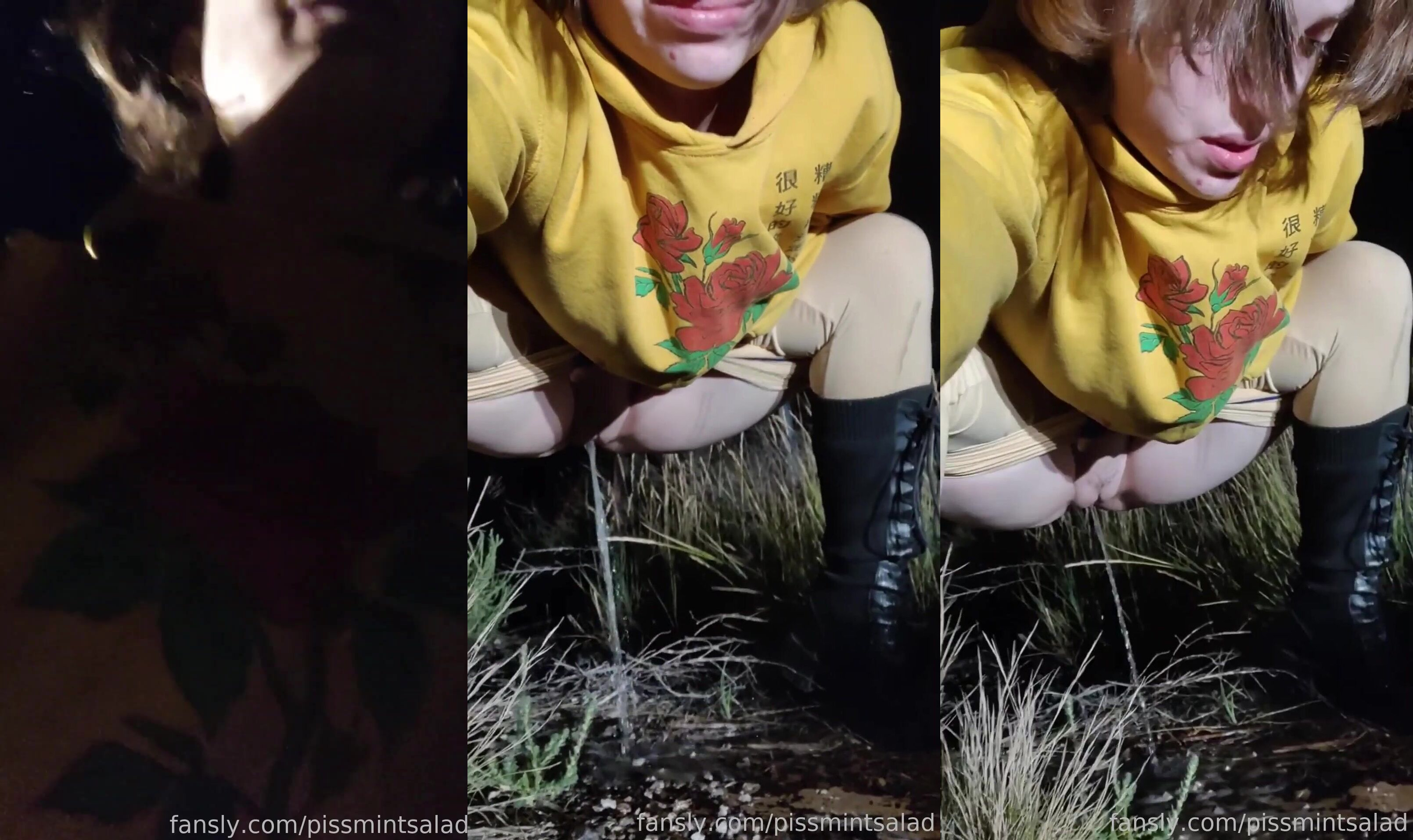 I had to piss so badly that I pulled over on the highway, squatted in front of my headlights, and let a long thick warm stream out on some rubble + grass! It was super cold outside and I was driving across the country when I filmed this so this is a natural look at me, plus a little vlog style chat! #fyp #piss #pissing #pee #peeing #public #desperation #pussy #bush #pisskink