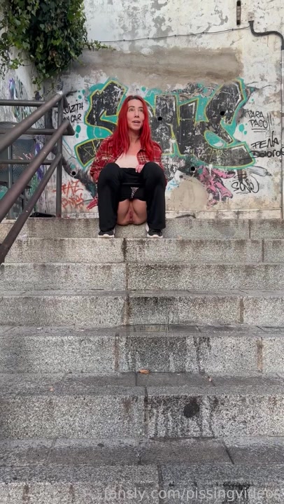 I felt risky so I did a nice pee down the public long stairs hehe #risk #risky #public #pisswhore #brat #trashing #rubbish #graffiti #pussy #wet #pissing #peeing #outdoors