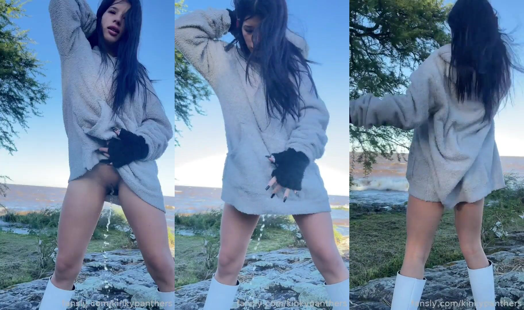 With the river in the background and the wind in the front, so much freedom!? #fyp #pee #pissing #public #petite