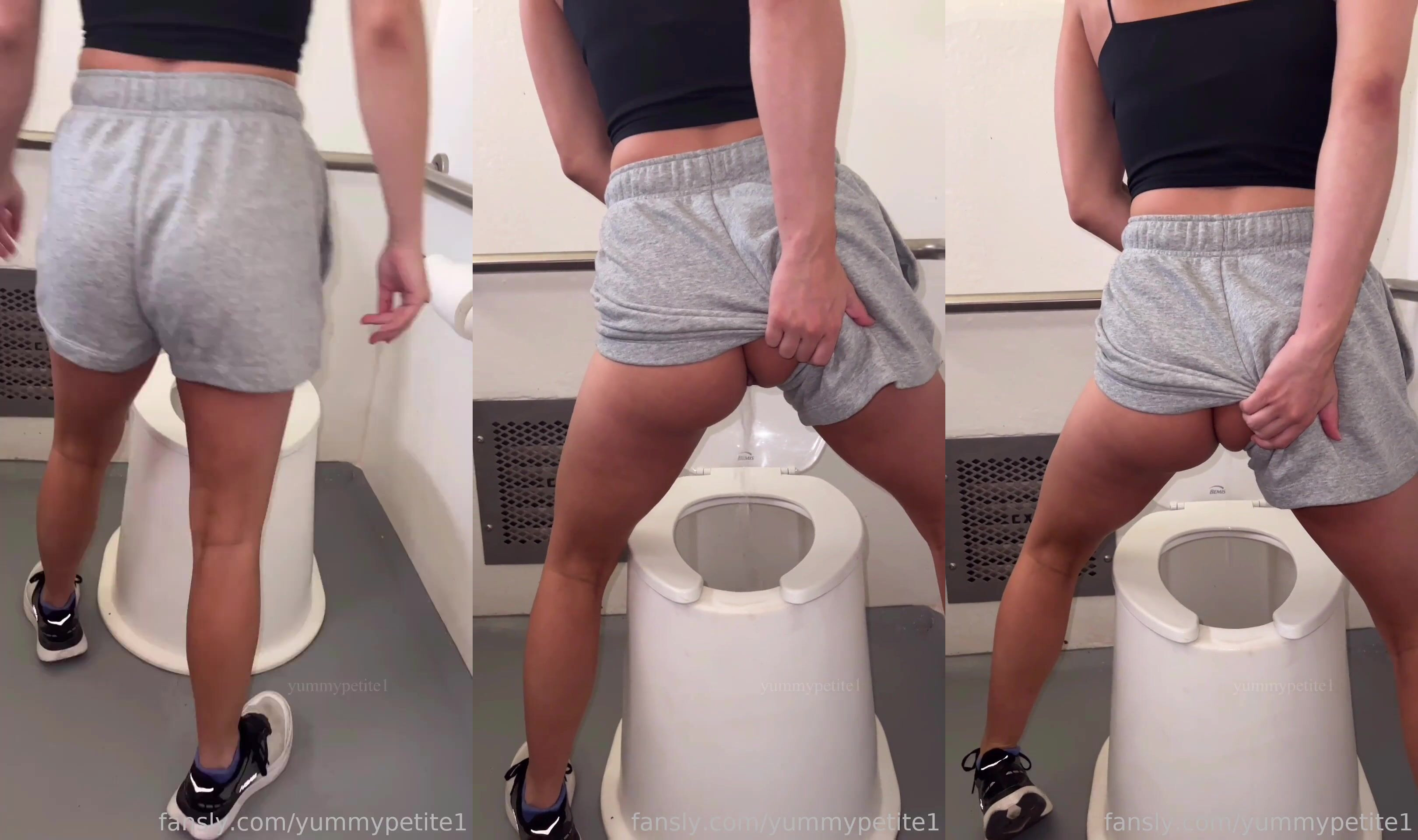 Standing pee in a public restroom before a hike!! This toilet was like 10ft deep, it was kinda scary lol. #pee #piss #watersports #brunette #petite #POV #standingpee #publicrestroom