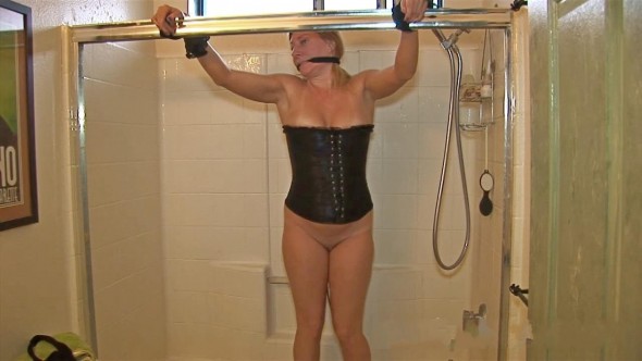 Reina needs discipline. She has been out of control so its time to enforce the rules. She is put into the shower, tied by the arms and gagged. Time to think will help her. Unfortunately she has to pee. She must wait until I decide she can go or piss herself. Its her choice. Seeing how long she can hold it will help her learn discipline. Plus it will make her bladder stronger.