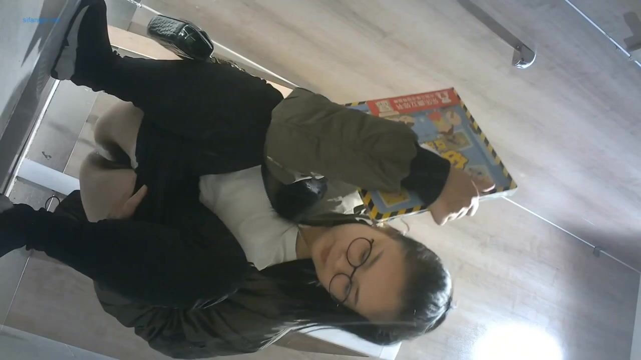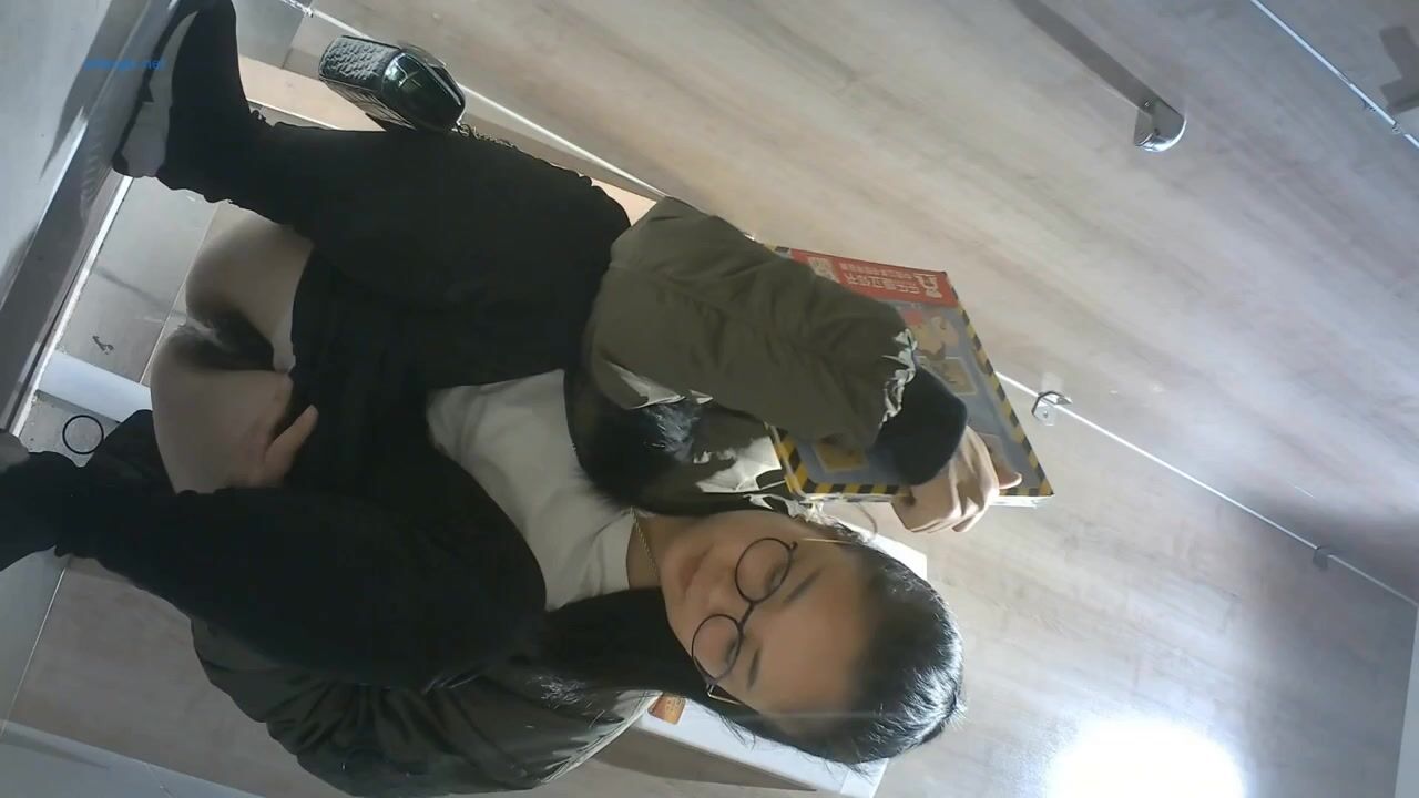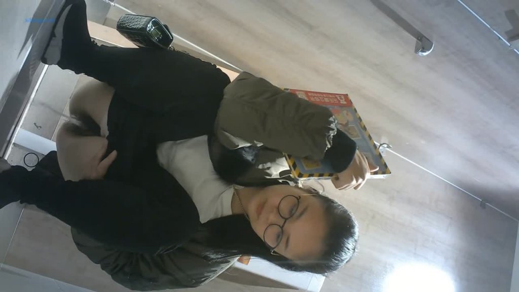 It seems her bladder is near its exploding point as she entered the stall and took off her trousers immediately without either shutting the door nor putting down her belongings.