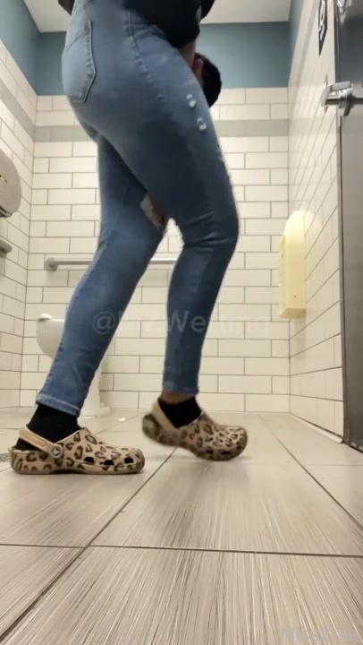 Can’t believe this just happened I was out running errands when I realized my bladder got super full. I was determined to finish what I was doing and head straight home, but I had to piss so bad that I couldn’t even concentrate anymore. I checked out my stuff & literally walked around the entire store frantically until I found the only bathroom in there and it happened to be unisex. I was SOOO lucky that it wasn’t occupied and I ran in there already leaking. I knew I didn’t have much time so I decided to set my camera up and started pissing myself. I cleaned up the floor afterwards and ran out lol #omorashi #wetting #publicwetting #jeanswetting