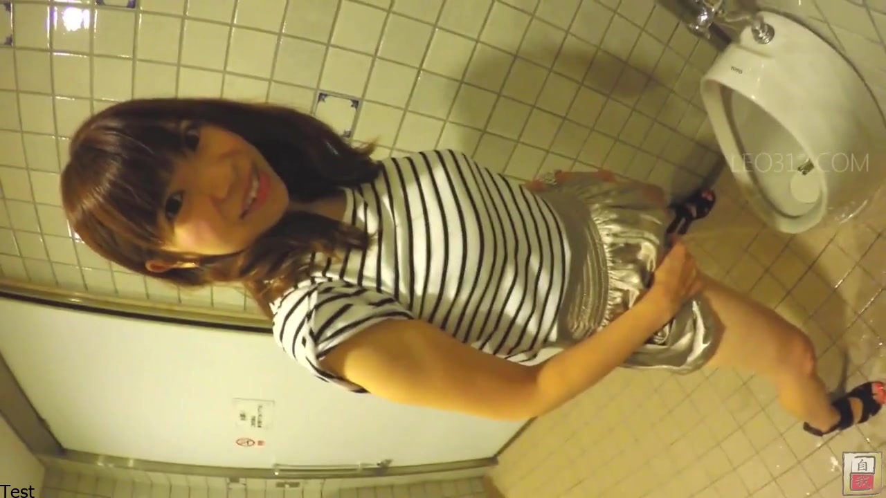 Japanese girl misses the urinal