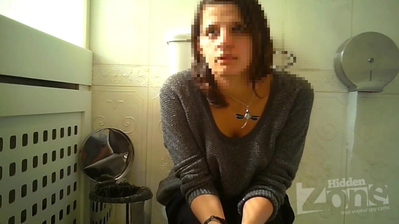 Hidden camera in the toilet at the train station. View from two cameras. The girl in blue panties pissed while sitting. Good shots from the back of the camera. Round ass and shaved pussy close-up.