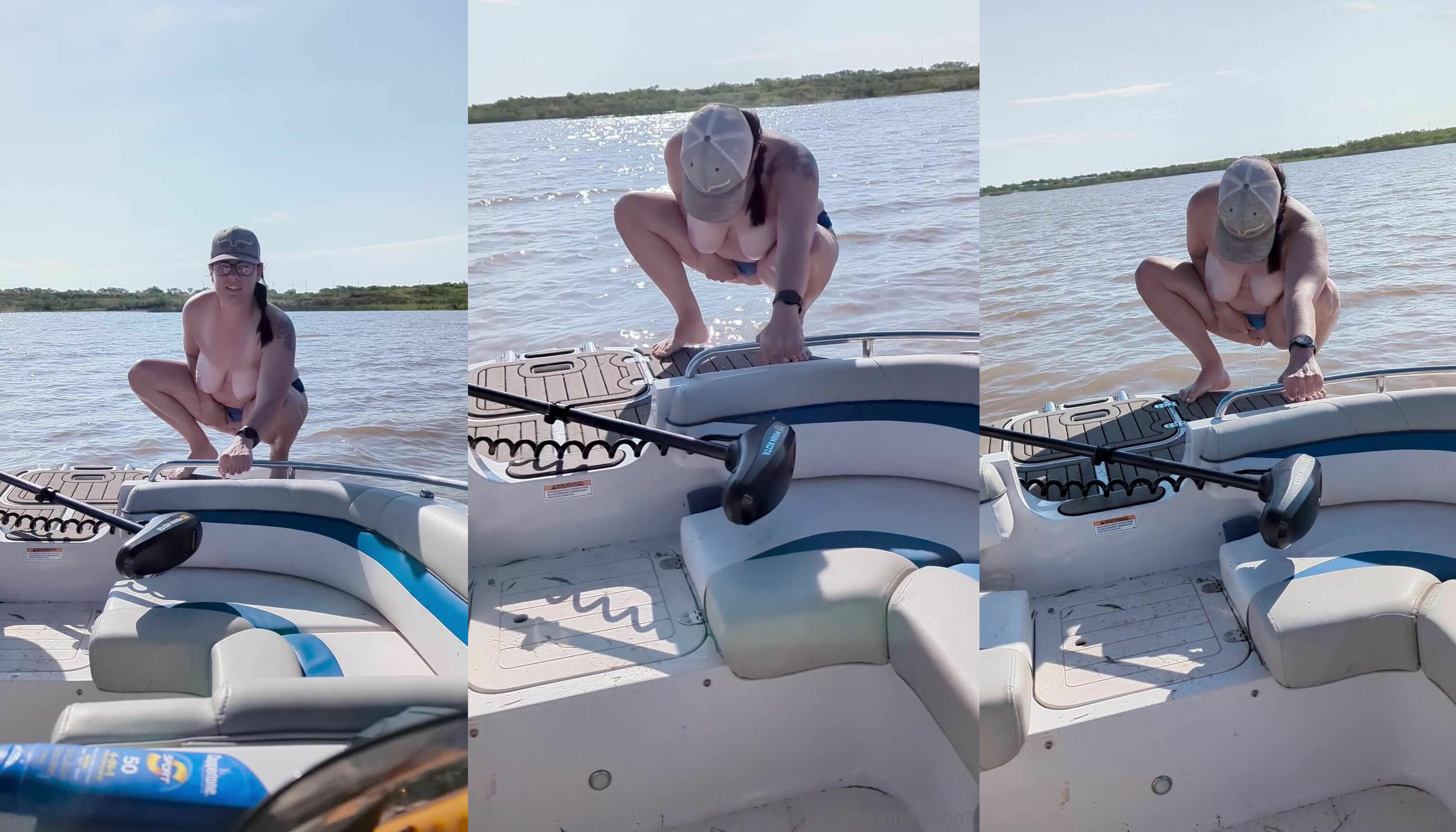 Pissing off the front of the boat after my bf filled me with a hot creampie
