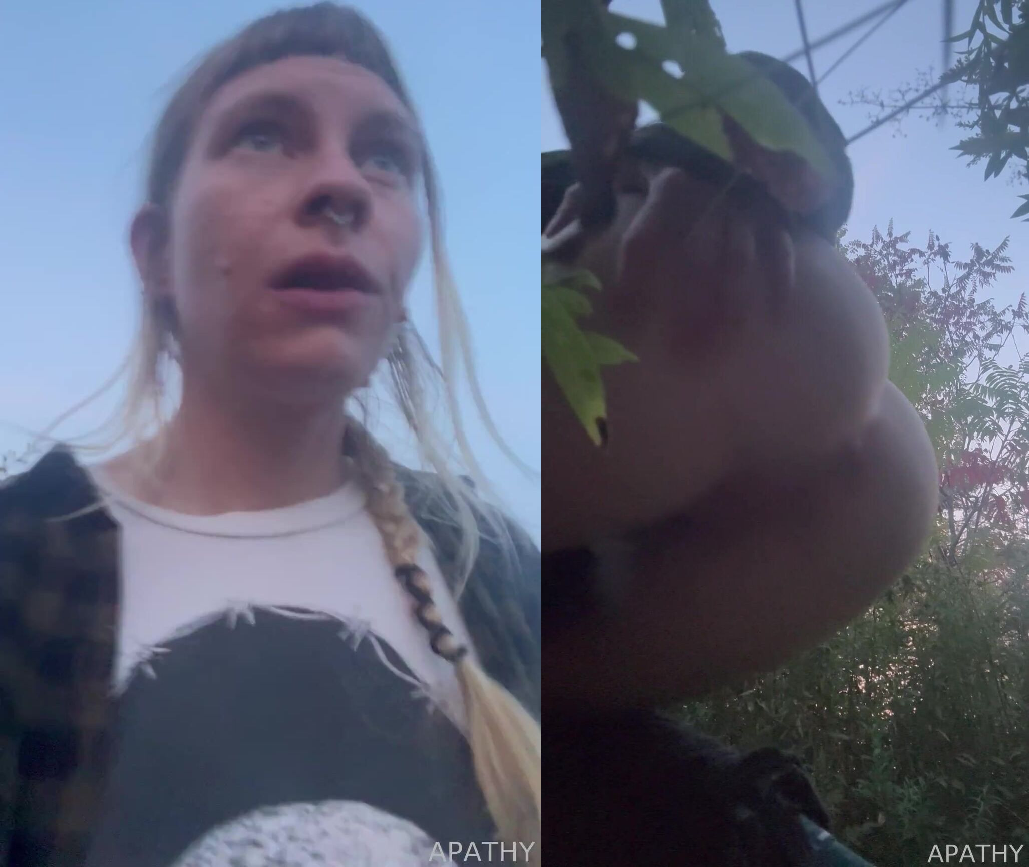 I look like butts (in a bad way) bc I’ve been sick… but it felt really good to be outside after sleeping for days.. Of course I had to pee while on the trail… #fyp #pee #piss #public #publicpee #risky #outdoors #peeing #ass