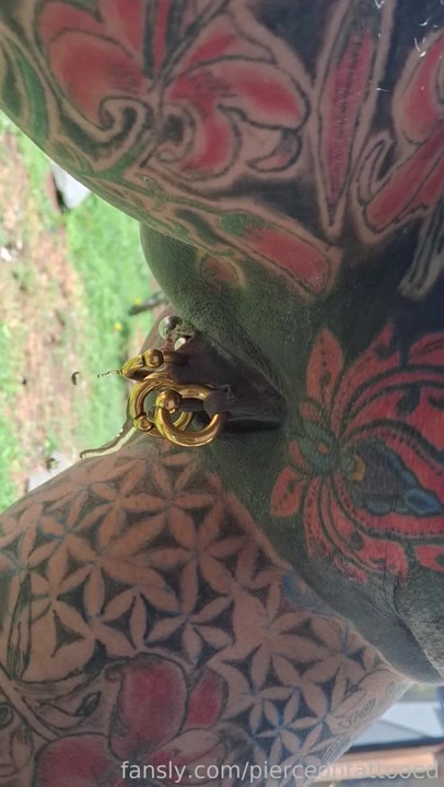 Here's a little pee video from today with my new fourchette piercing in. #pee #piercings #tattoo #amateur #outdoors