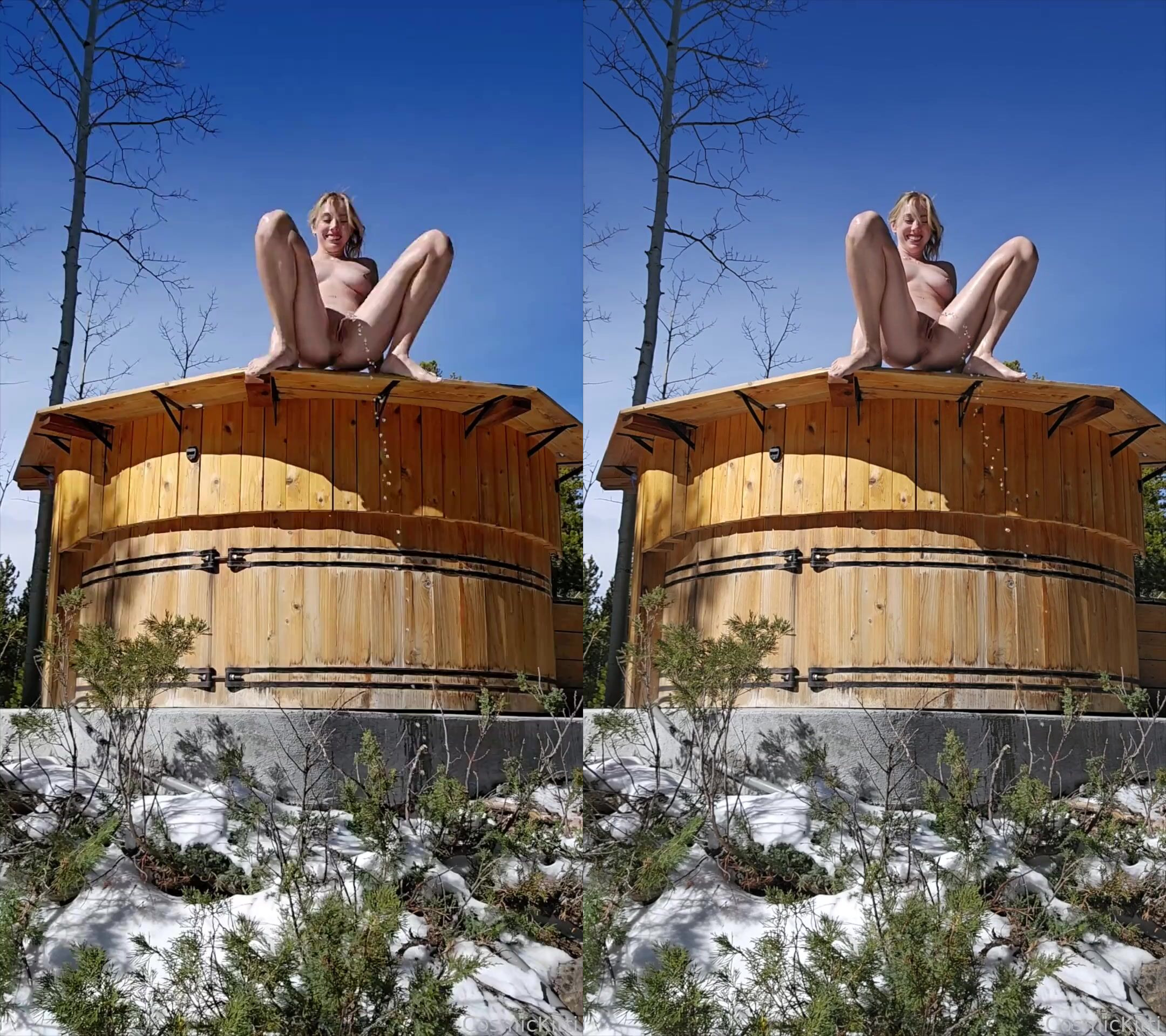 Ever find yourself in a hot tub and you have to pee? Well luckily, at the collab house you can just hop up on the side of the tub and relieve yourself! I had held it in for a while and had the most epic stream spraying out over the snow. Not seen is the other creators watching me pee through the window #pee #piss #p #yellowsnow