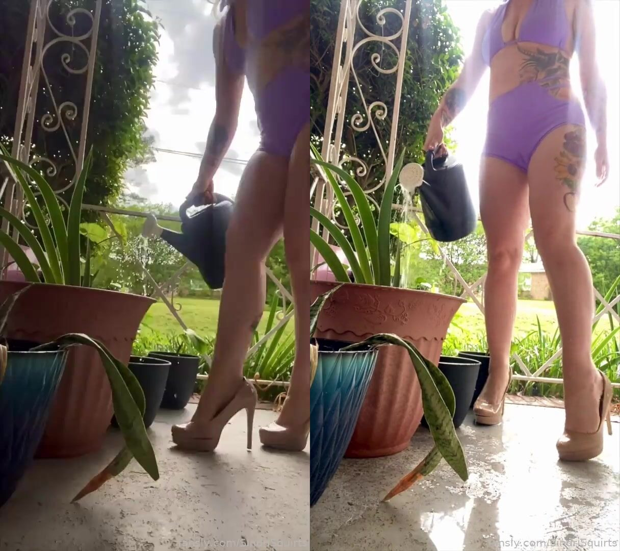 Time to water the plants. I think I missed a little. #pee #piss #wetting #amateur #swimsuit #bikini #milf #heels #fetish