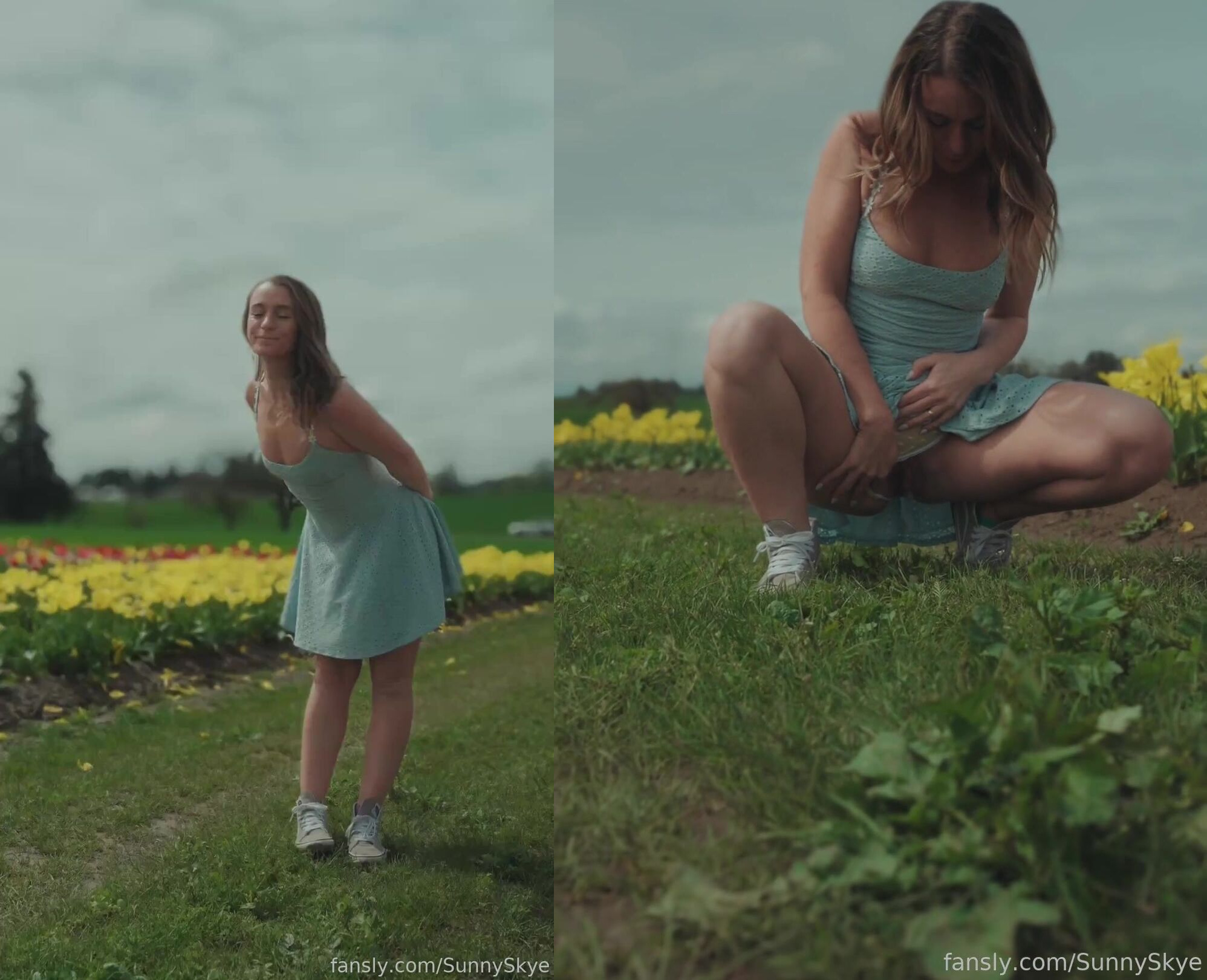 We went to this beautiful tulip farm and walked around the flowers. I was so far from any actual restrooms so I found a perfect spot among the flowers to #pee and relieve myself as I just couldn’t take it anymore #outdoors #public #cute #sundress #brunette #silly #goldenshower