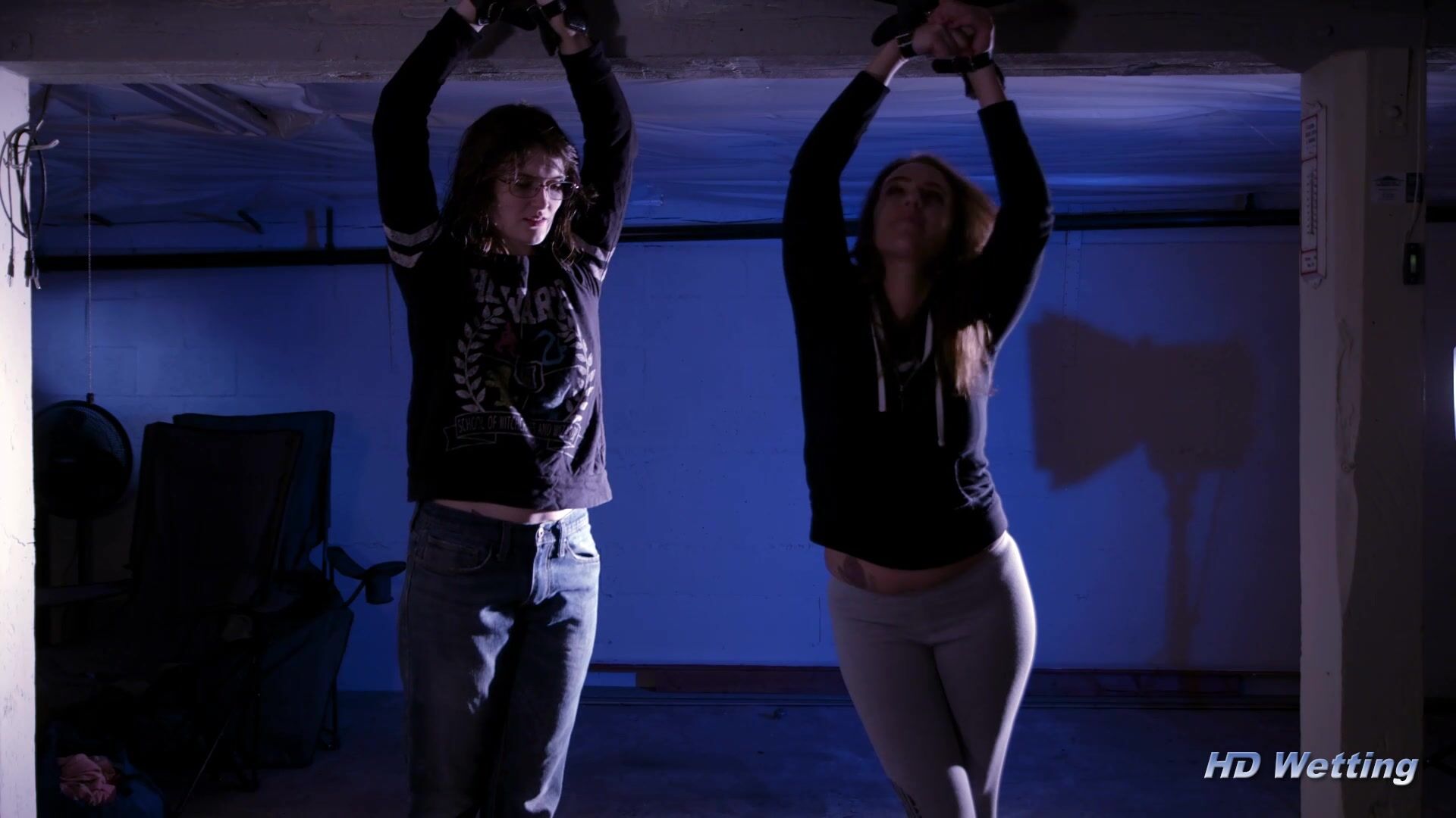 After having a serious disagreement, Alisha and Sosha are tied up together in the dungeon by their friend, left to workout their differences. The only problem is that Alisha is desperate to pee. When they told their friend that their relationship had it a rough patch do to a serious disagreement, their friend claimed to have training as a therapist, and she as an idea how to fix things- Tie them up and leave them alone, bound to one another, for six hours. Their friend swore that this would fix any issues they were having. As a result, we find Alisha and Sosha tied up, arguing, and to make matters worse, Alisha needs to pee. The only thing they can seem to agree on is that their friend’s solution to their issues was idiotic and that they never should have listened. Plus, their original disagreement still hasn’t been settled. Alisha believes that Star Wars is the superior franchise while Sosha thinks Star Trek clearly better. They continue to argue about which franchise is superior, the whole time Alisha is growing more and more desperate to pee. The argument finally comes to an end when Alisha has to pee too bad to think about anything else. Sosha tries to provide friendly encouragement to keep holding, but Alisha’s situation is dire. When Alisha finally wets her pants Sosha is sympathetic and does her best to provide comfort. Alisha is clearly upset about having an accident. Trying to help Alisha feel better, Sosha concedes that Star Wars might not be that horrible after all. Alisha is still embarrassed, but grateful that Sosha is able to acknowledge the merits of her arguments. Alisha also admits that Star Trek isn’t all that bad, and explores some interesting topics.