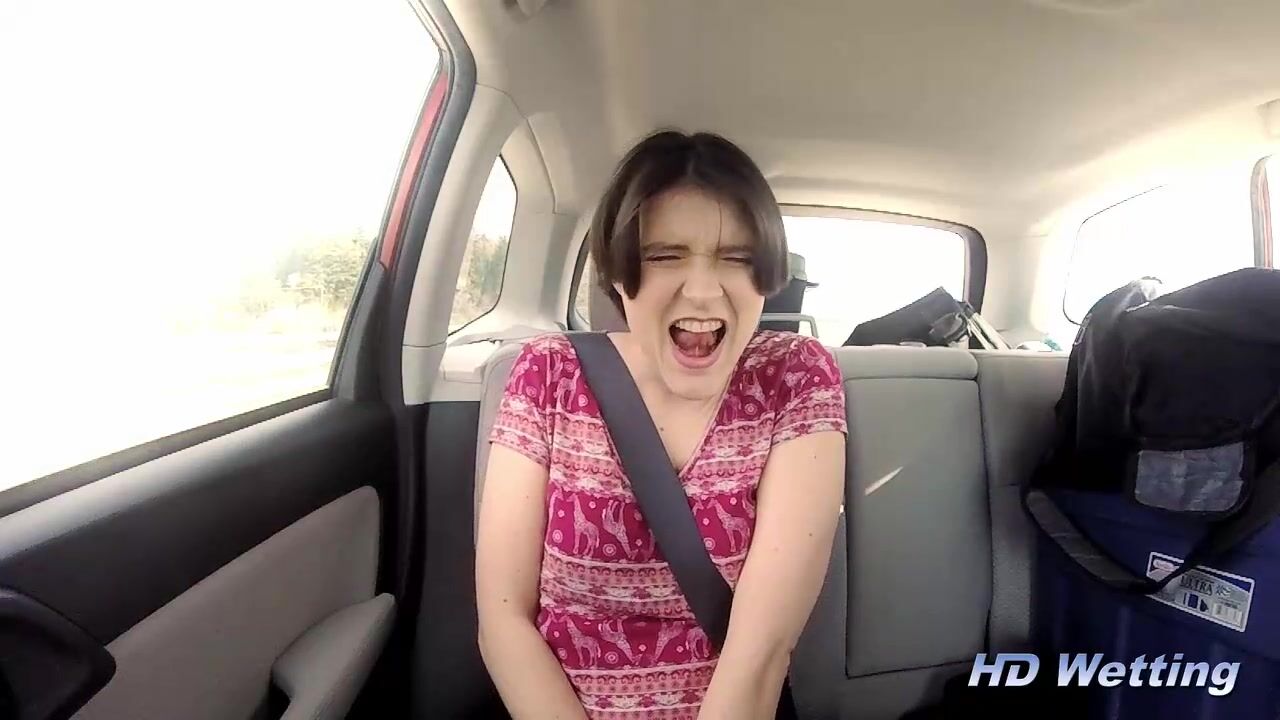 In this prolonged scene of real desperation, we get to watch Sosha frantically struggle not to wet herself over the course of more than 10 minutes, completely unedited. For this scene we join Sosha as she is riding in the car, extremely desperate to pee. Completely unedited, we follow her desperate journey through a single camera view where she grows desperate and even starts to leak a bit. Finally, we arrive at a safe place to stop the car. As the car stops moving, Sosha leaps from the vehicle, but it is too late. It is a bit difficult to see because of the position of the sun relative to the camera, but as she exits the car you can see a stream pouring from the back of her pants. A close examination reveals a sizable wet patch that is quickly growing larger. Having lost control, Sosha simply stands next to the car as she soaks herself.