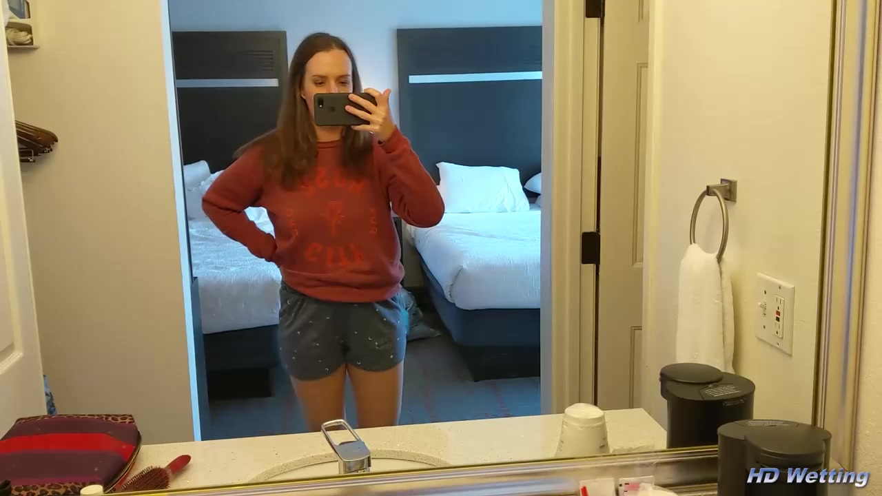 Check out this self-filmed video from Alisha where, with her phone, she records herself peeing in her shorts in the mirror. There is just something about these self filmed videos that is truly intimate- No one else is involved, just the model and the viewer. In this video Alisha pees in her shorts, giving us a nice extreme close-up view of the streams running down her legs. After she is done peeing, she takes off her shorts to show off the wet patch she made on them.