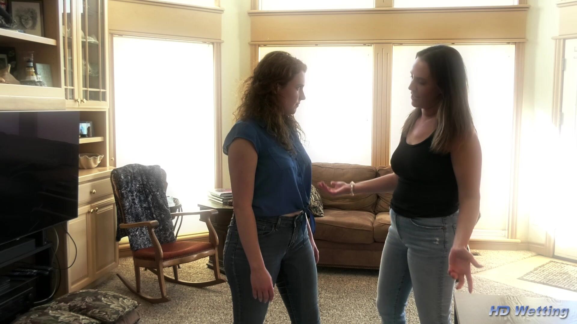 Caralynn gets tickled by Alisha until she pees in her jeans in this playful wetting video. In this scene Alisha is hiding behind the Sofa as Caralynn comes into the living room looking for her. When Caralynn least expects it, Alisha jumps out from behind the sofa and starts tickling her until she pees in her pants.