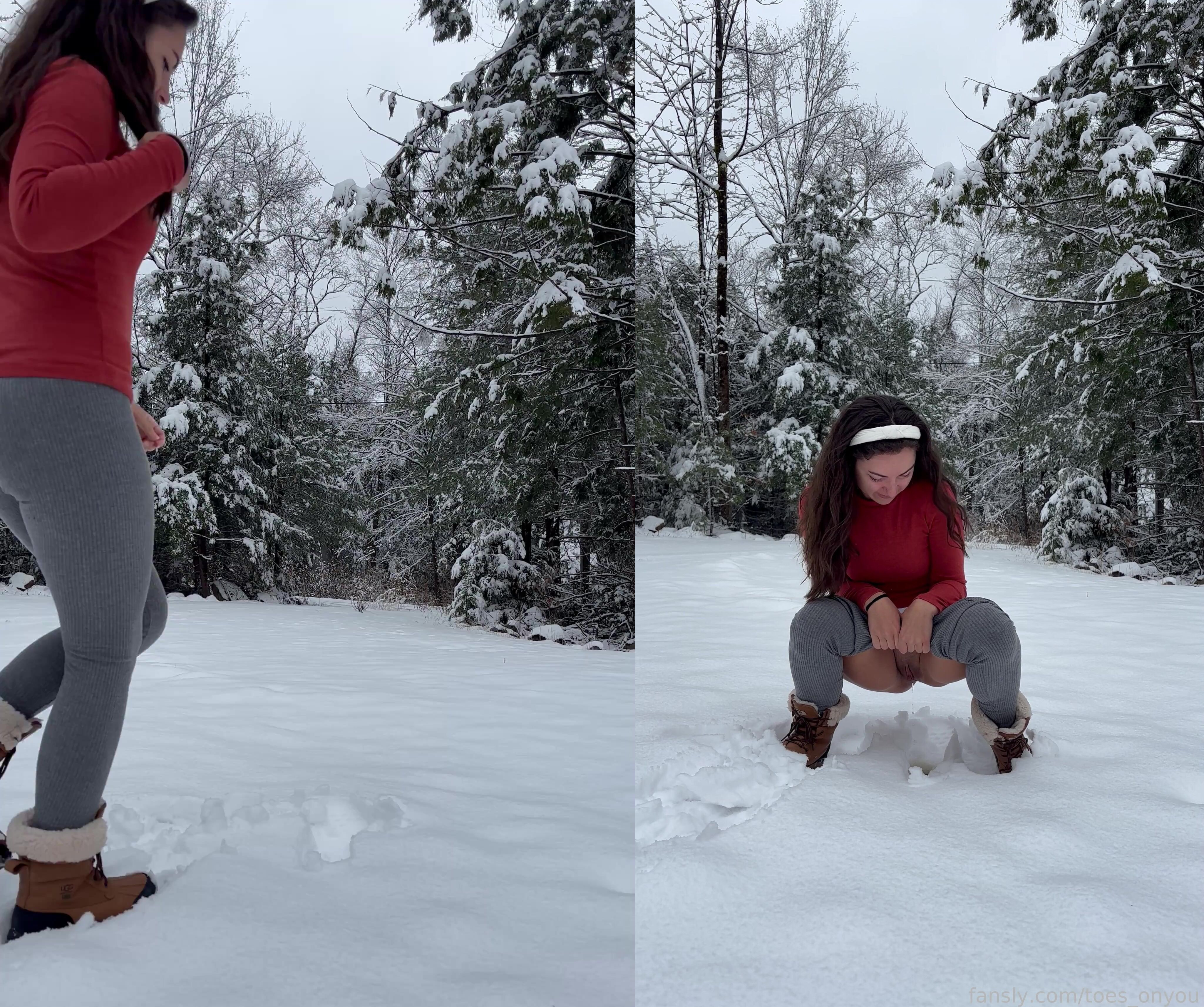 I thought winter was over! I was wrong it’s been snowing all weekend. Beautiful, yes. But I’m ready for the warmer weather.. especially after going on a warm vacation recently-that was a tease.. at least I’m tan Disclaimer - *all my videos are filmed on my private property* #outdoors #outdoorpee #pee #peeing #piss #pissing #peekink #brunette