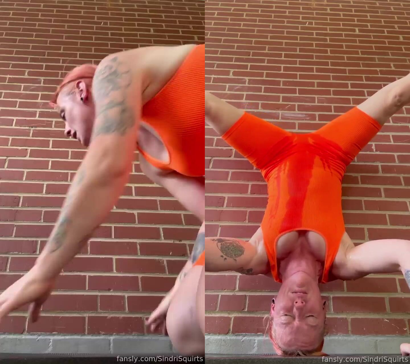 Headstand time! I wish I had enough time to set up from the top view but as you can see I was already leaking just getting the mat down and camera set up. It’s been a while so I did use the wall for support a little bit but it still felt so good rolling down the front and the back. And I love the color change on this jumper. #Amateur #American #Milf #Cougar #Wetting #Piss #Pee #Peeing #Headstand #Outside #Kink