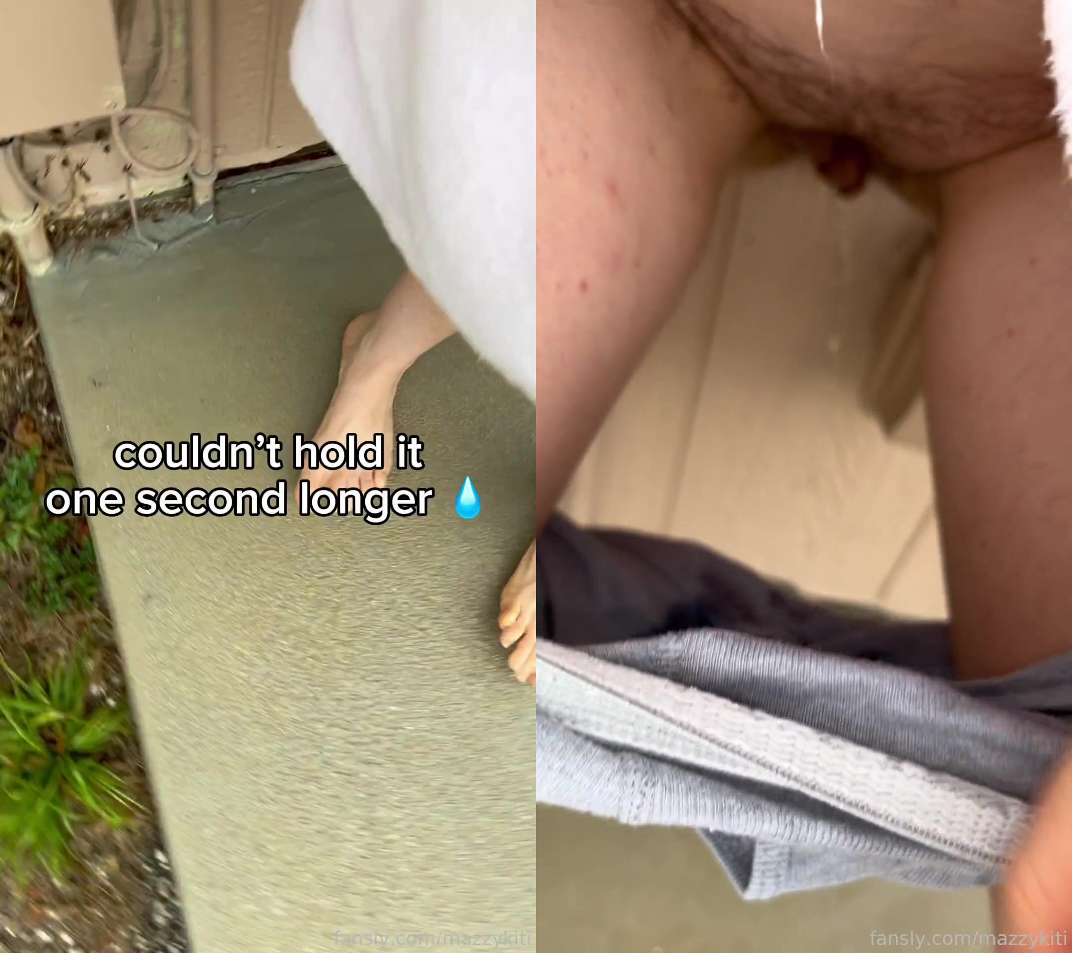 Watch me lose control right when I get outside the door and release my bladder, accidentally soaking my boxers (so comfy to wear around the house) #desperatepee #bladdercontrol #bigpussylips #glasses #peeingoutside #risky #watersports #pipi #fyp