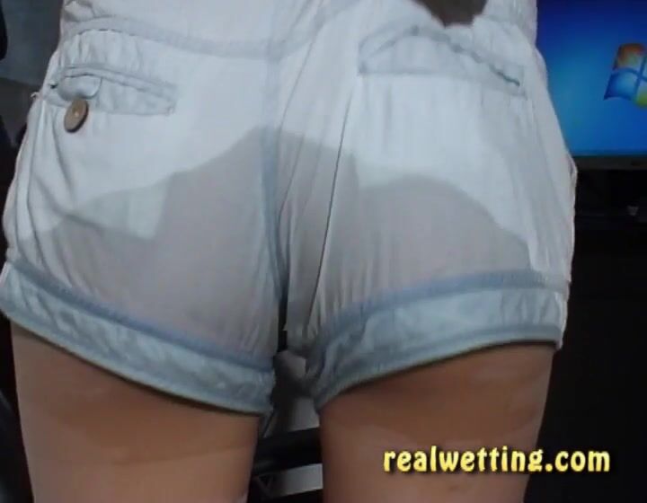 Natalie - Natalie Wets Her Overalls And Pantyhose Playing A Fun Computer Game