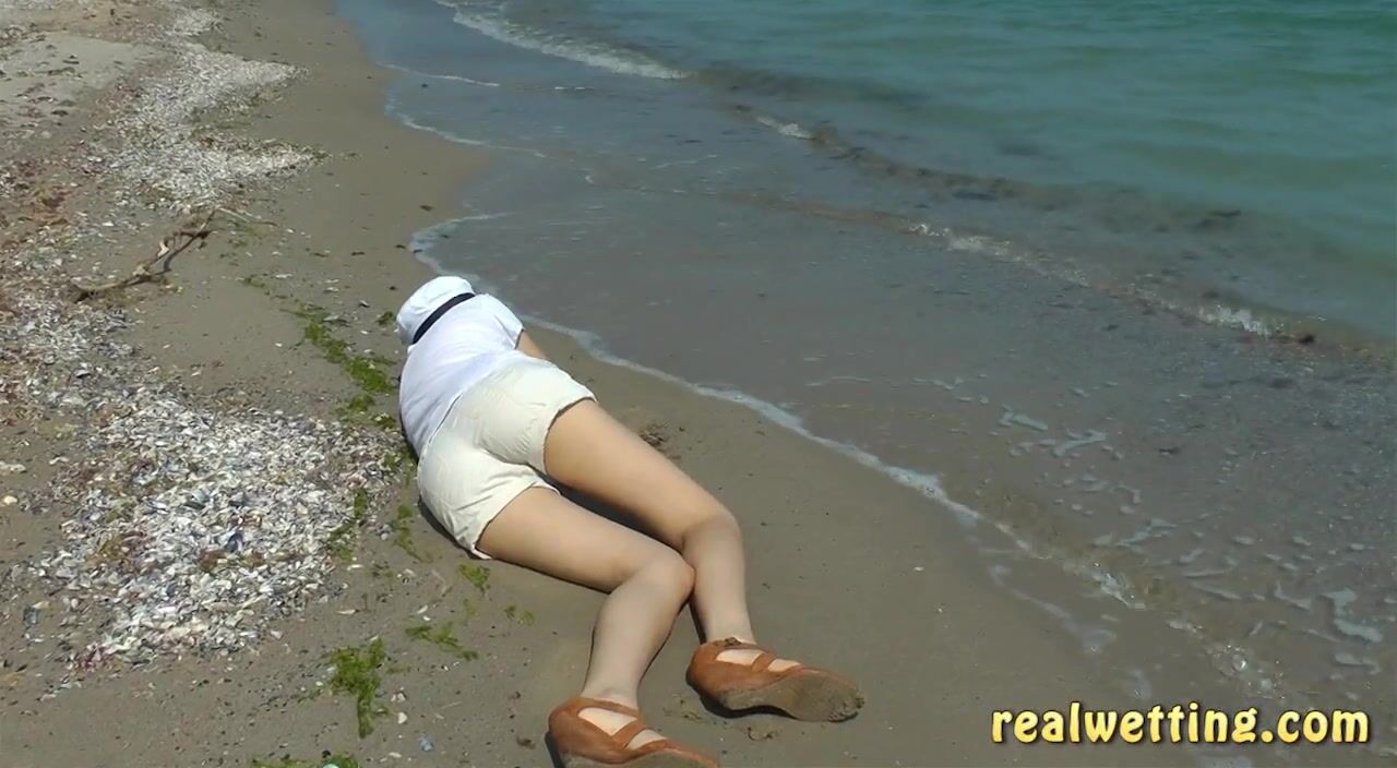 Drunk Natalie left the party to wander the beach after a few steps she falls and starts pissing herself.