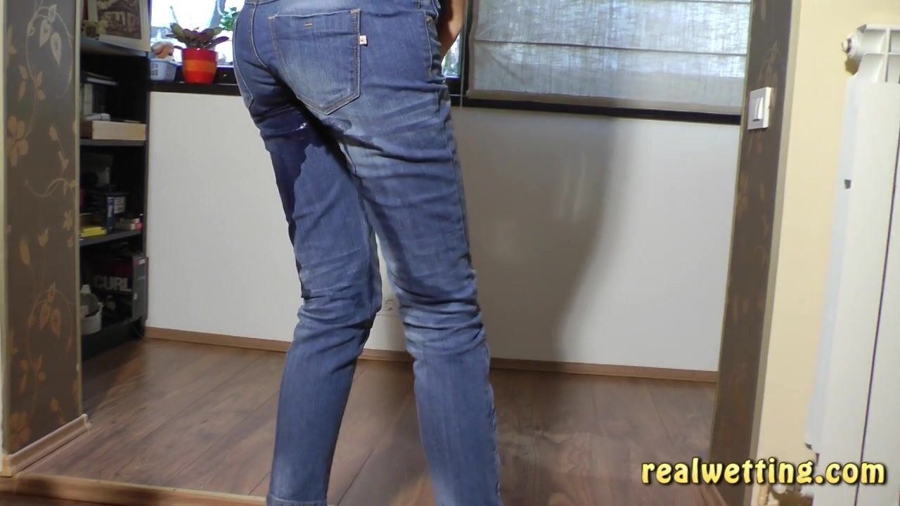 While working on her computer Natalie pisses her jeans.