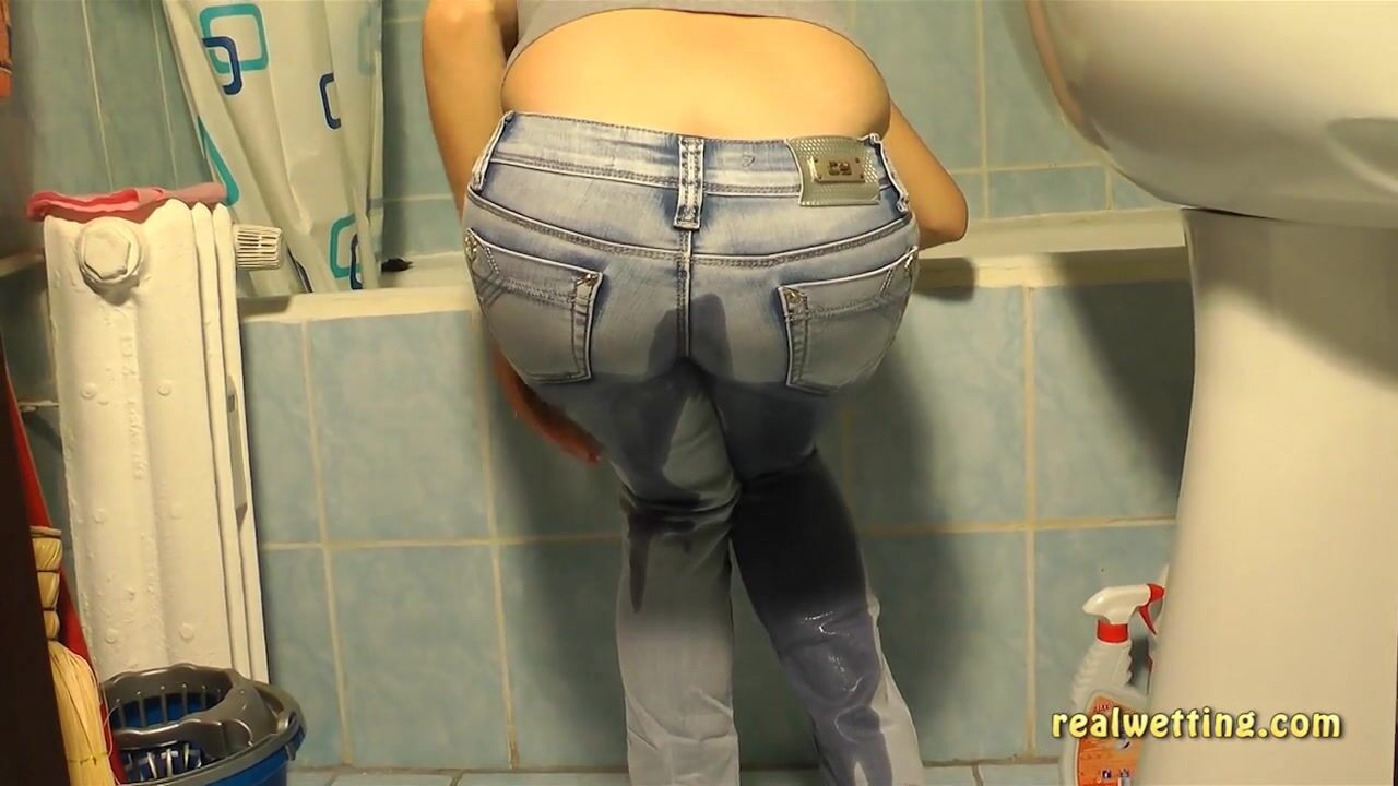 Antonia drenches her tight jeans in piss while cleaning the bathroom.